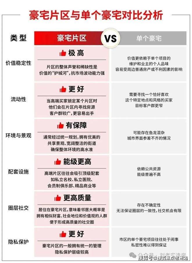 在价值稳定性、流动性、环境与景观、配套设施、圈层、隐私等维度,小胖君做了两者的对比,供大家参考: