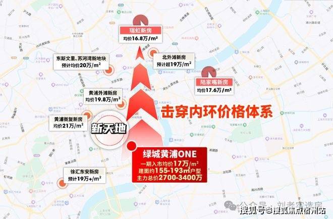 虹口在售新房单价已达16.8万/㎡,绿城地王预期更是19万+/㎡;