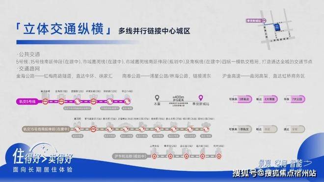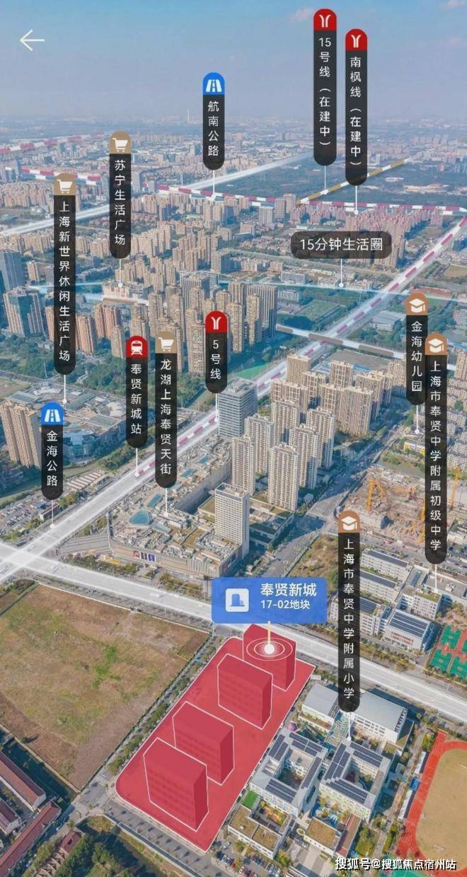 交通配套:紧邻地铁 5 号线奉贤新城站,直线距离约 300 米,未来 15 号线南延伸段(在建中)将与 5 号线交汇。周边有金海公路 - 虹梅南路隧道、南奉公路 - 浦星公路 / 林海公路等主干道。