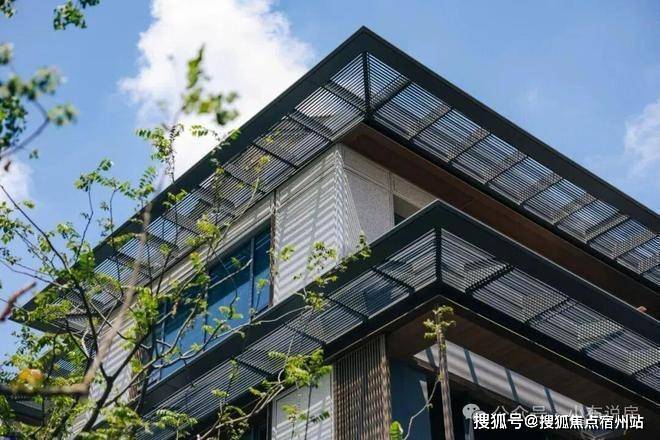 它也采用多见于豪宅新盘的风雨连廊,打造风雨无阻的归家体验的同时。风雨连廊的造型与景观巧妙呼应,别有意趣。
