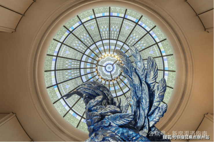 推开大门,你很难不被这份海派艺境所打动,约9米挑高迎归大堂随后映入眼帘,彩玻穹顶之下,是一尊名为 “百羽栖澜” 的艺术雕塑,由当代艺术家蒋乃骏大师、非遗大漆传承人巴忠天大师跨界共创,打造出艺术馆级的归家体验,这是一份属于上海、属于建发海宸的浪漫。
