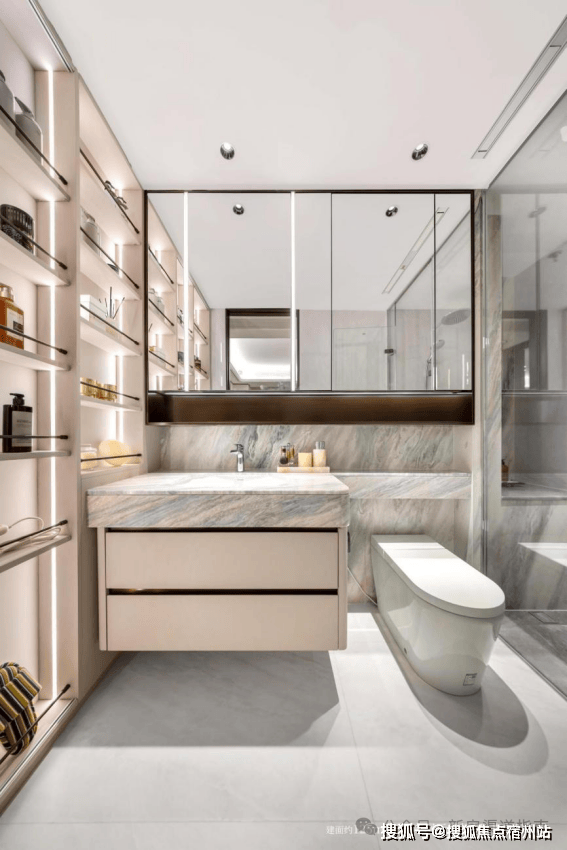 另一个让人印象深刻的细节,是无处不在的收纳空间。从多功能餐边柜到通顶高柜,从定制橱柜到隐藏式的推拉零食架, 全屋收纳加起来有约12㎡左右 。这意味着家里的大件行李箱、清洁工具,还有各种零碎杂物,基本上都能拥有属于自己的“家”。