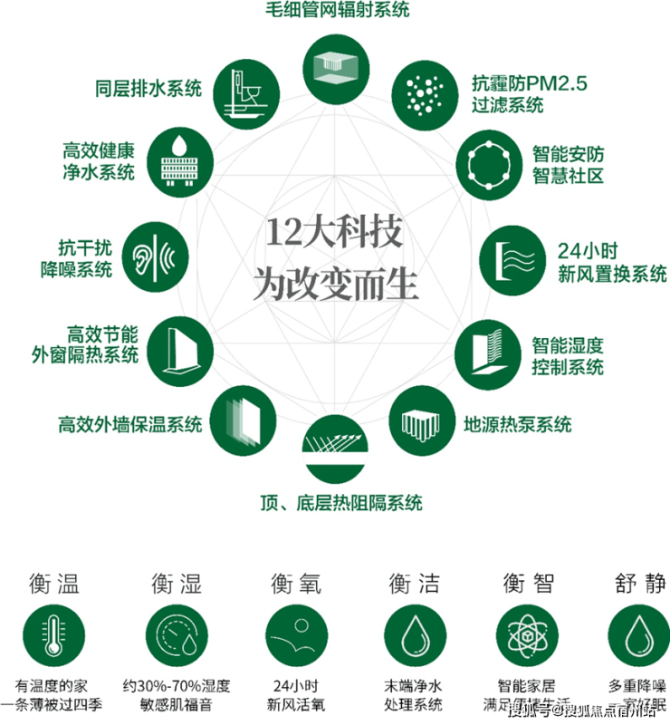 以"府系3.0科技墅境"为内核,通过12大绿金科技构建"五衡一舒"健康系统,让建筑真正活了起来---它知道何时该为你送来一缕清风,何时该为你守住一片宁静。