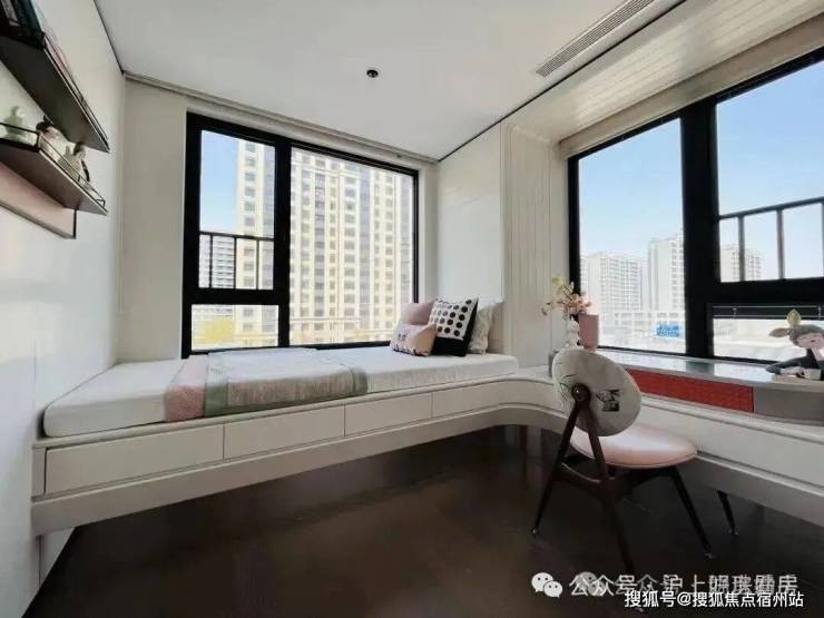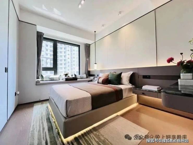 两间卧室朝南,均带有飘窗,主卧自带独立卫浴,小户型也可以拥有酒店套房般的体验。北向房间设计双飘窗,这也就意味着拥有双向景观,给了生活更多一种的可能。