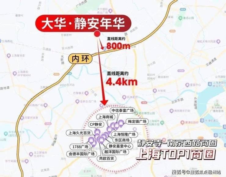 项目 直线距离静安内环仅约800米! 直线距离 静安寺-南京西路商圈仅约4400米! 是大宁名副其实的“地王位置”!