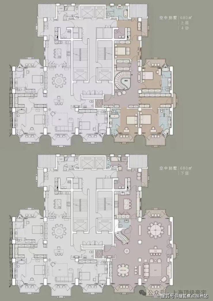 住宅部分全部大平层(复式)设计,单套面积约370-1500㎡,全部精装交付。