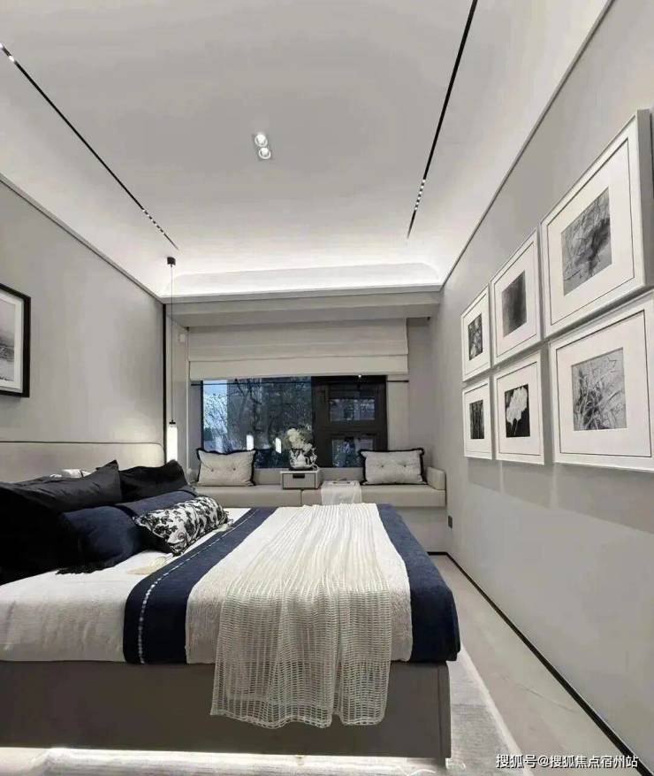 主卧转角落地窗+飘窗,也算是非常少见的了。净面宽约3.6m,不算进门的衣柜,进深大约5.7m左右。根据测算,可以放置宽约2m的床+2个床头柜(宽度约45cm/个)是可以的。