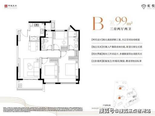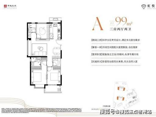 建面约 99㎡ 三房两厅两卫|三开间朝南,改善标杆