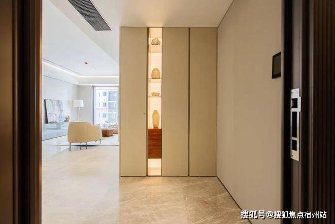 入户设置玄关,玄关处配置收纳空间,不仅提升了居者入户的仪式感与尊崇感,也让进出大门随手的物品有了大容量的储藏空间。