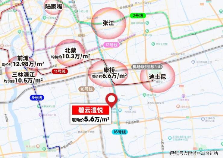 交通方面:距离16号线周浦东站约1.8公里、18号线繁荣路站约2.6公里,算不上名副其实的地铁盘,可借助其他短驳交通工具,通勤到张江、前滩、陆家嘴、人民广场等核心区域还是比较方便的。