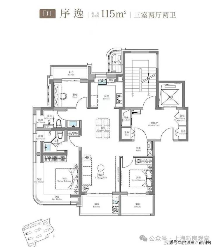 再来看建面约114㎡三房,百平三房的升级款,让人拥有“这是120㎡”的错觉!