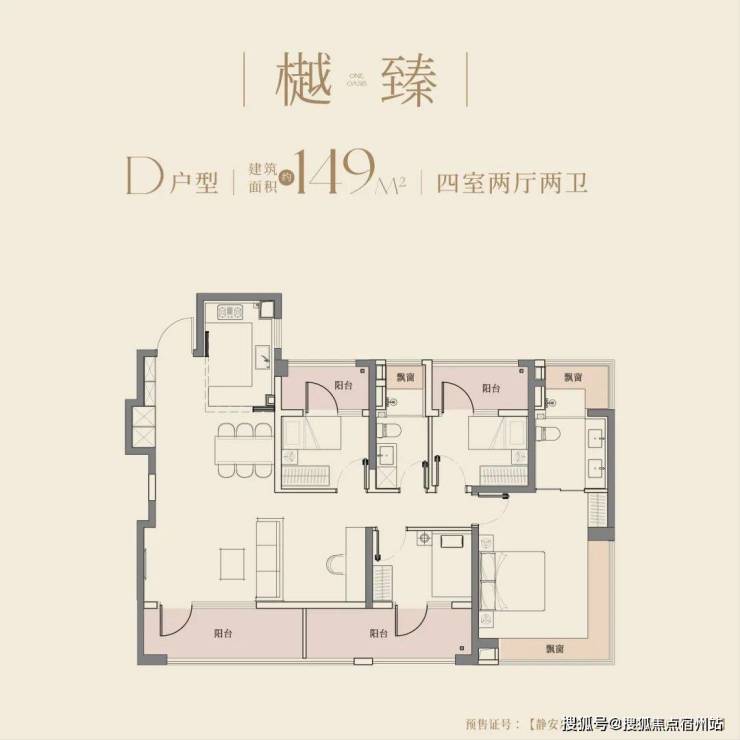 以建面约148㎡户型为例,四阳台+双270°转角飘窗设计,实得面积多出约15㎡,相当于“白赚一间书房”。