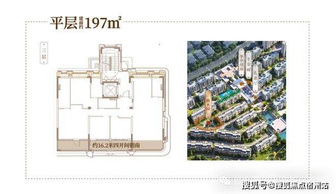 平层建面约197㎡凭借约16.2米四开间朝南+一层一户的设计,打造开放而又内敛的日常仪式感;
