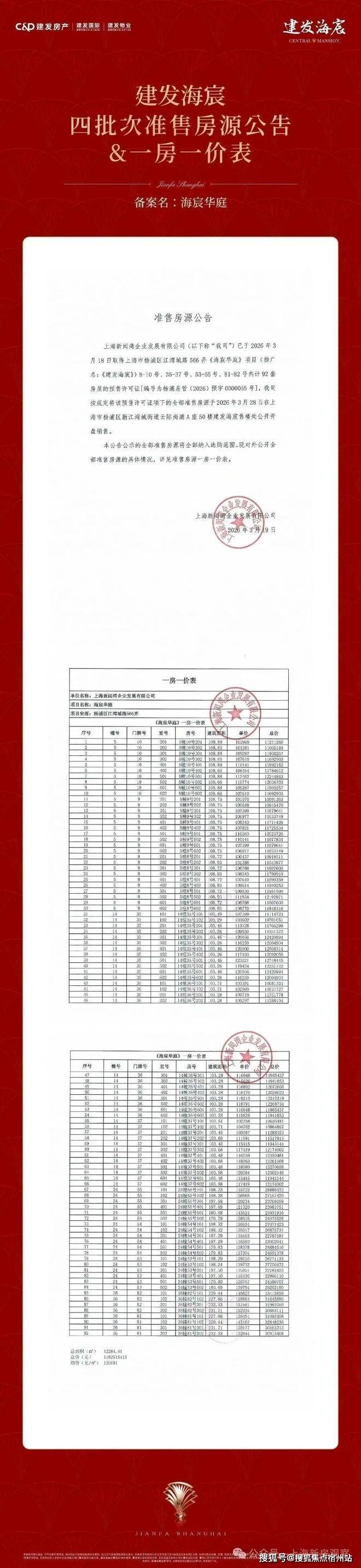 最新消息!新江湾「建发海宸」三开三捷!2026年项目同样爆火,1-2月来访超千组,成交近百套!四批次加推92套约105-235m²洋房及叠加;均价134156元/m²!认购金100万;认购时间:3月20日-3月24日