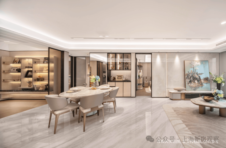 样板间约125㎡全能户型带来媲美140㎡的尺度感,三厅一体的设计理念,给你一个会“长大”的家,再加上人性化的海量收纳,满足当代购房者既要又要还要的心理,又一次精准拿捏住无数客户的置业喜好。