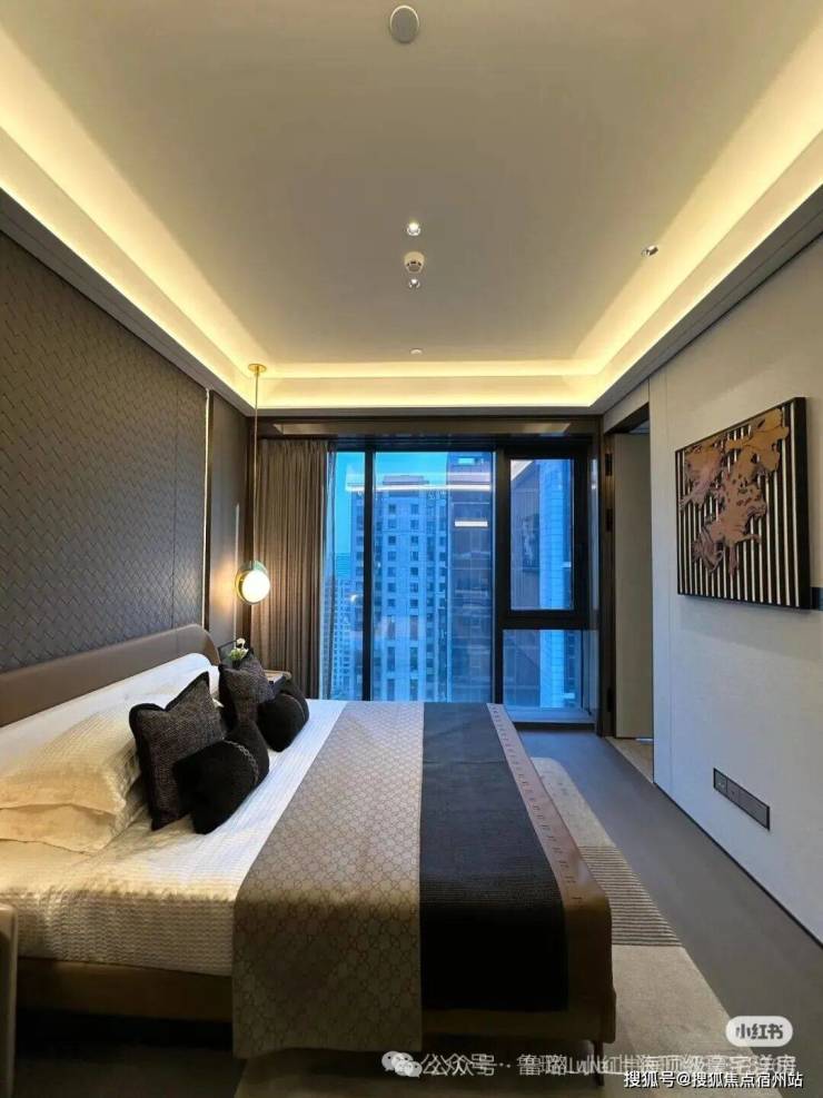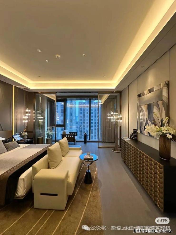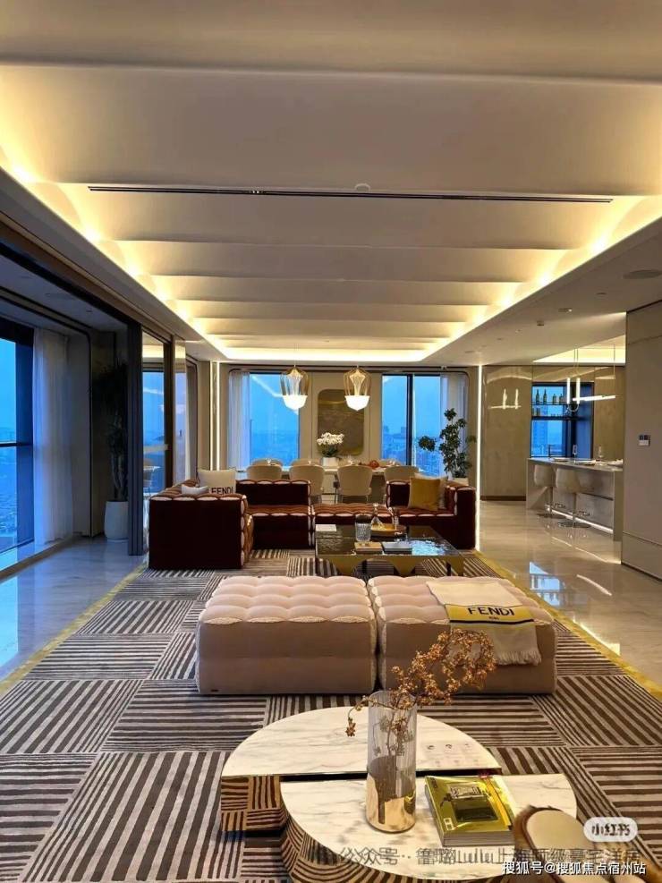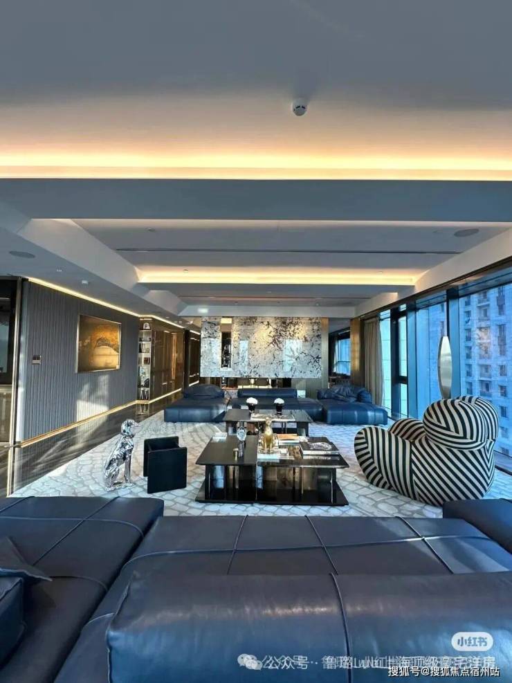 装修上,将时尚与奢华巧妙融入每个角落,所有的窗帘、移门、提升窗、灯光、空调、新风、地暖都可以通过手机远程控制。