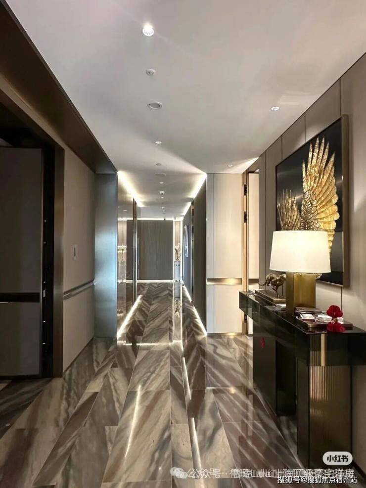 比如采用奢石静雅棕石、雪山银狐石、月光白石、挪威木纹石等石材;