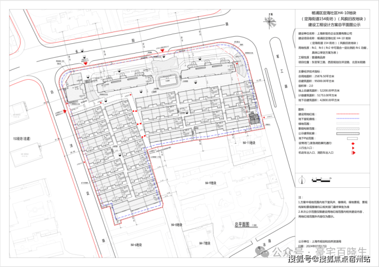 根据设计方案显示,整个项目总建筑面积约9.5万方,容积率2.0。包括3栋19-20F的高层,26栋2F的风貌别墅及配套设施组成。