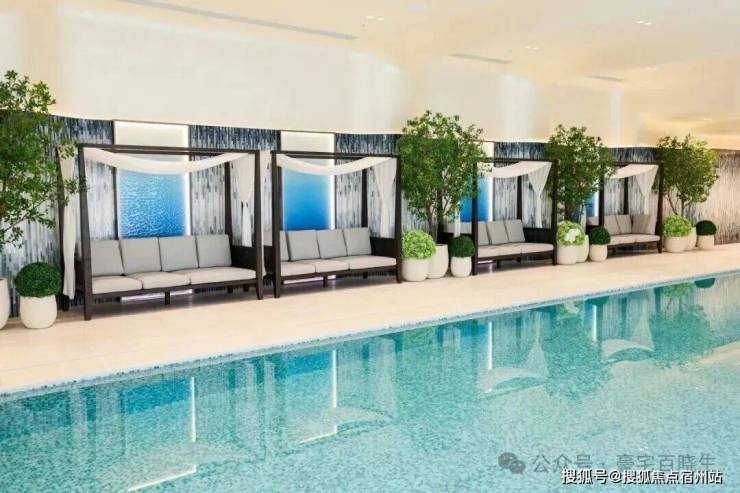 比如,半标无边界泳池以渐变马赛克墙面、水波纹感天花与透景玻璃幕墙,将下沉庭院景致融入其中,这处可游憩的水下艺境,就是一座美术馆级的美学场域。