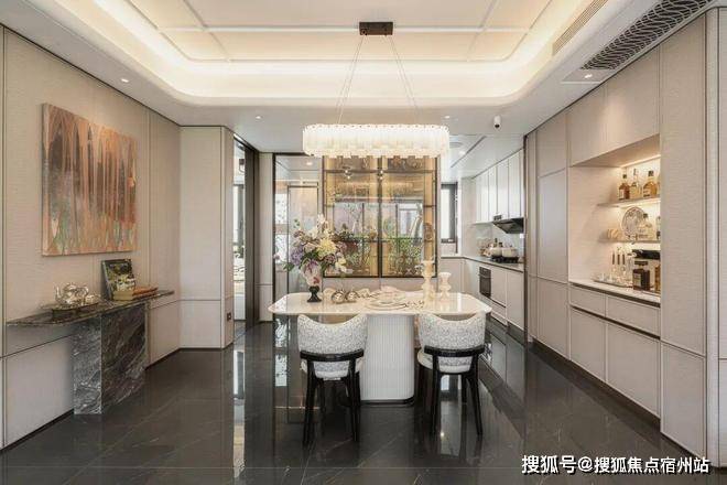 精细收纳:餐厅双侧预留餐边柜位置,含双冰箱交付机位,一体化收纳系统提升空间利用率。