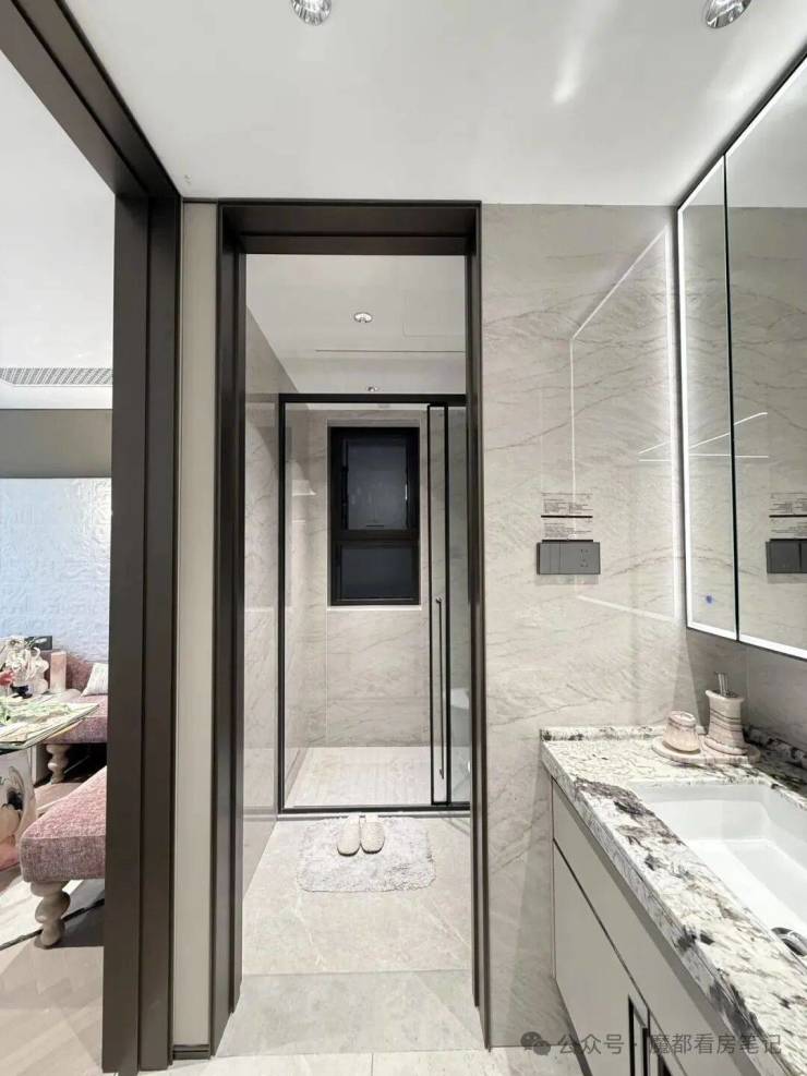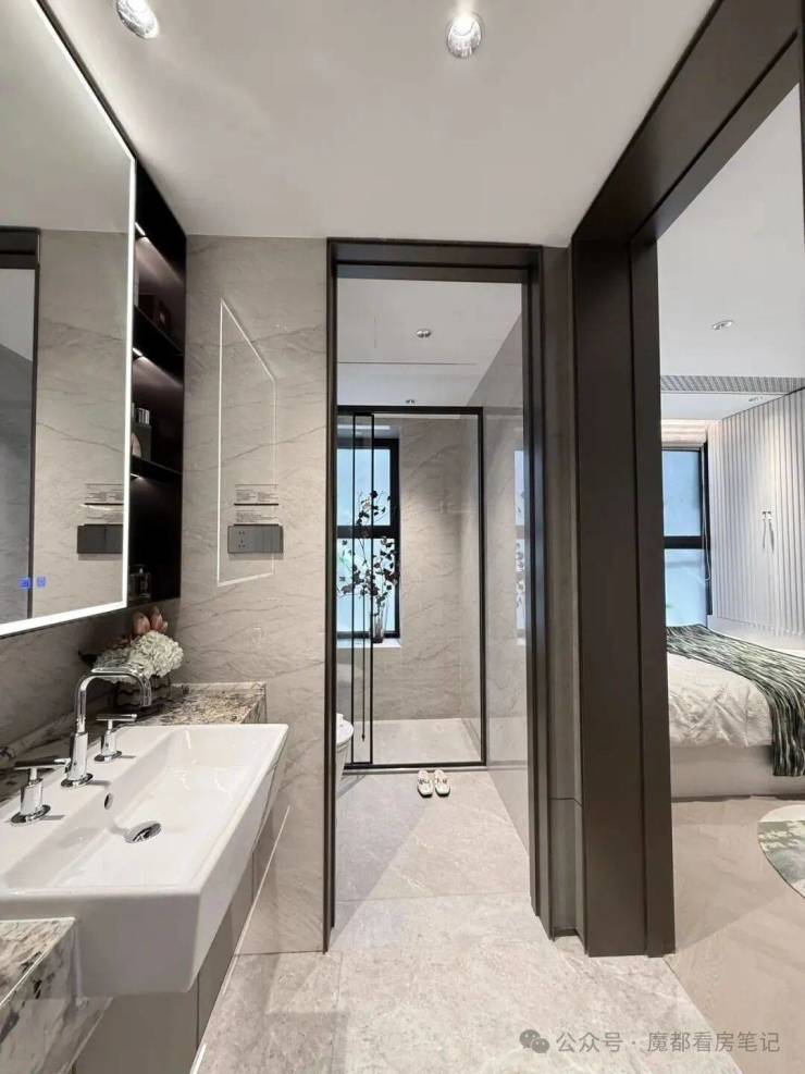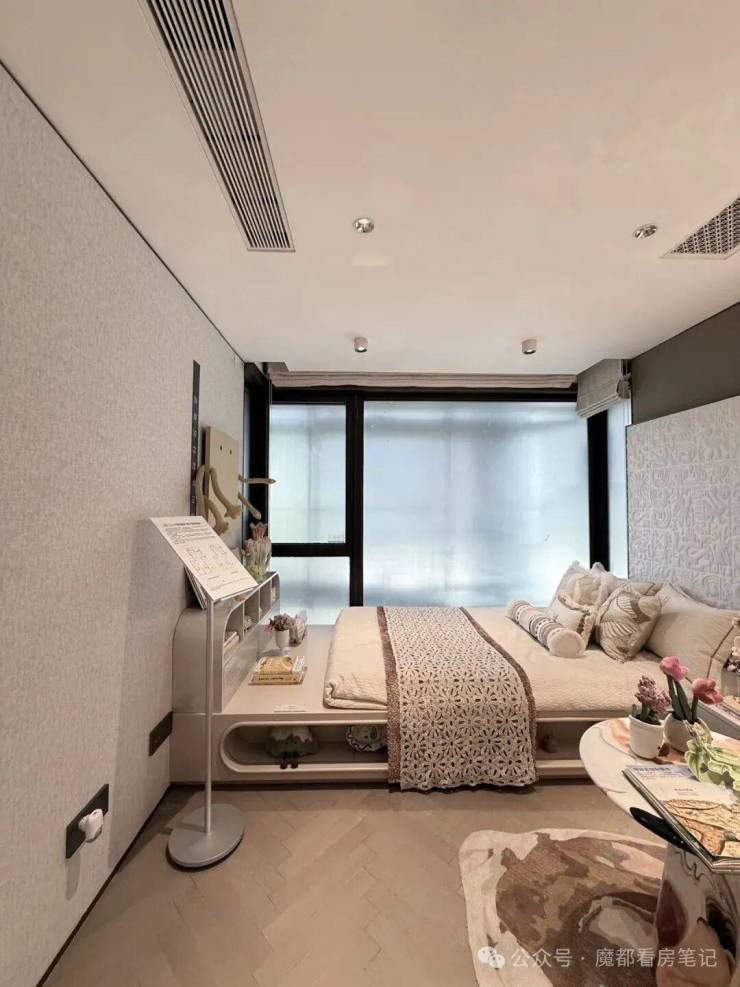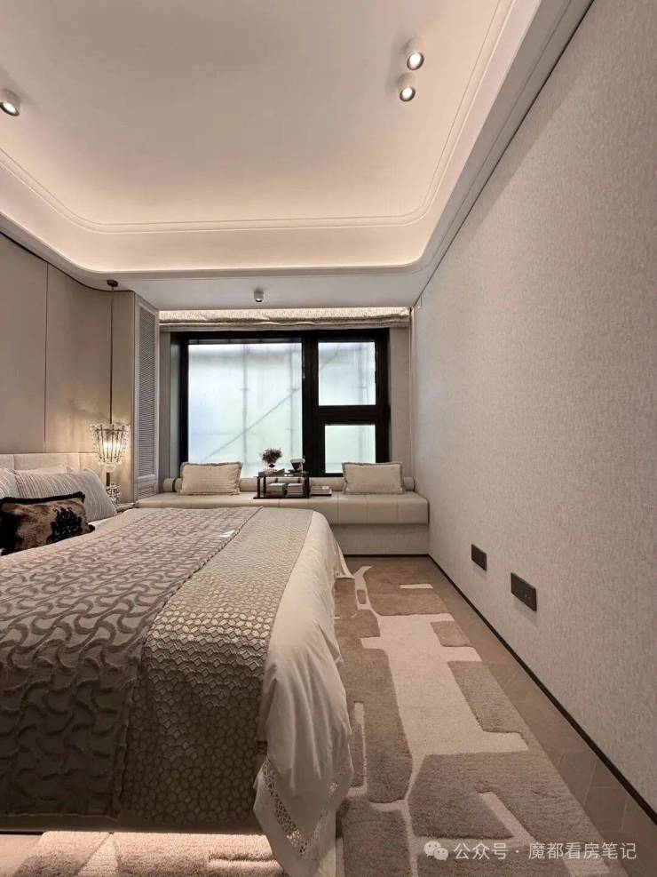 豪华的套房设计,北侧卫浴飘窗+南向床边双飘窗的设计,更是把这个空间的视野和收纳空间延展开来,尺度感真的很惊人。