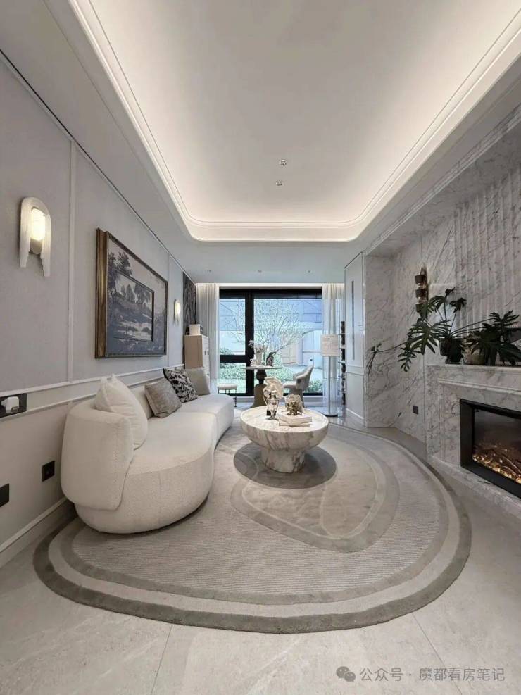 除此之外,最让我惊艳的还是这个能放下6-8人餐桌的宽绰厨房,以及这个尺度感惊人的客厅 。