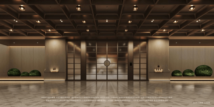 双轴线的设计,充分拓宽了视野面与观赏点位,环形回廊、精神游廊与下沉庭院通过立体景观平台相融,又创造出隔岸听泉的诗意场景。在每个重要生活触点,业主都能拥享独特景观和欣赏视野。