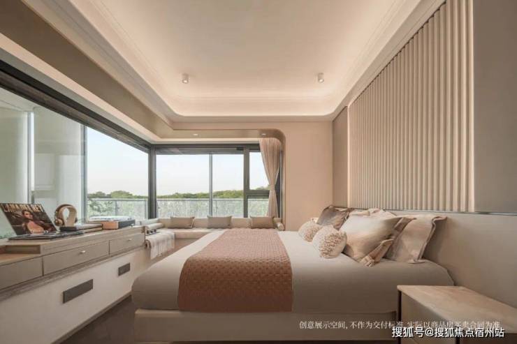 如果是 边套的主卧,还会有一个约270°的转角飘窗 ,尺度感和实用性更上一层楼。
