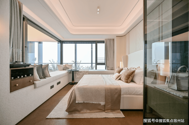 边套主卧三面采光,全屋满飘窗设计,主卧标配270度飘窗,搭配全明通透的卫浴空间,将顶豪的尊崇感渗透到每一个日常的场景。