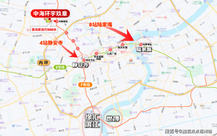 项目紧邻内环,与静安一线之隔,4站直达静安寺、5站中山公园、7站人广。