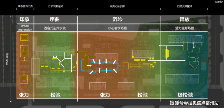 这些场景并非刻意设计,而是从空间氛围中自然生发,利用空间动、静态的气氛转换形成有变化的体验序列:从街区型到生活型社交场景的过渡、从度假型到私享型社交场景的过渡。
