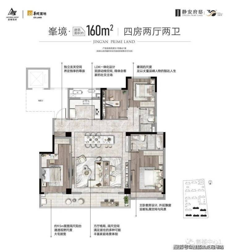 产品面积:洋房建面约160㎡、高层建面约100-140㎡