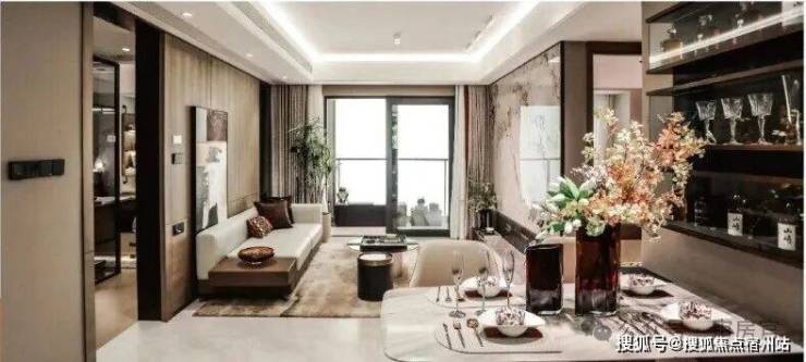奢华颜值—— 全屋优质墙布,搭配600*1200大面积地砖,将奢雅质感融入到方寸之中,细致打造美的惊艳; 创变乳胶漆+局部石膏板吊顶天花板、定制 潘多拉艺术岩板背景墙,充满张力的空间,与线条相映成辉。