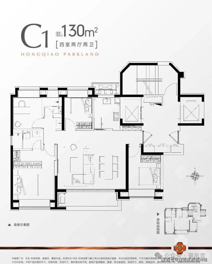 建面约130㎡4房2厅2卫