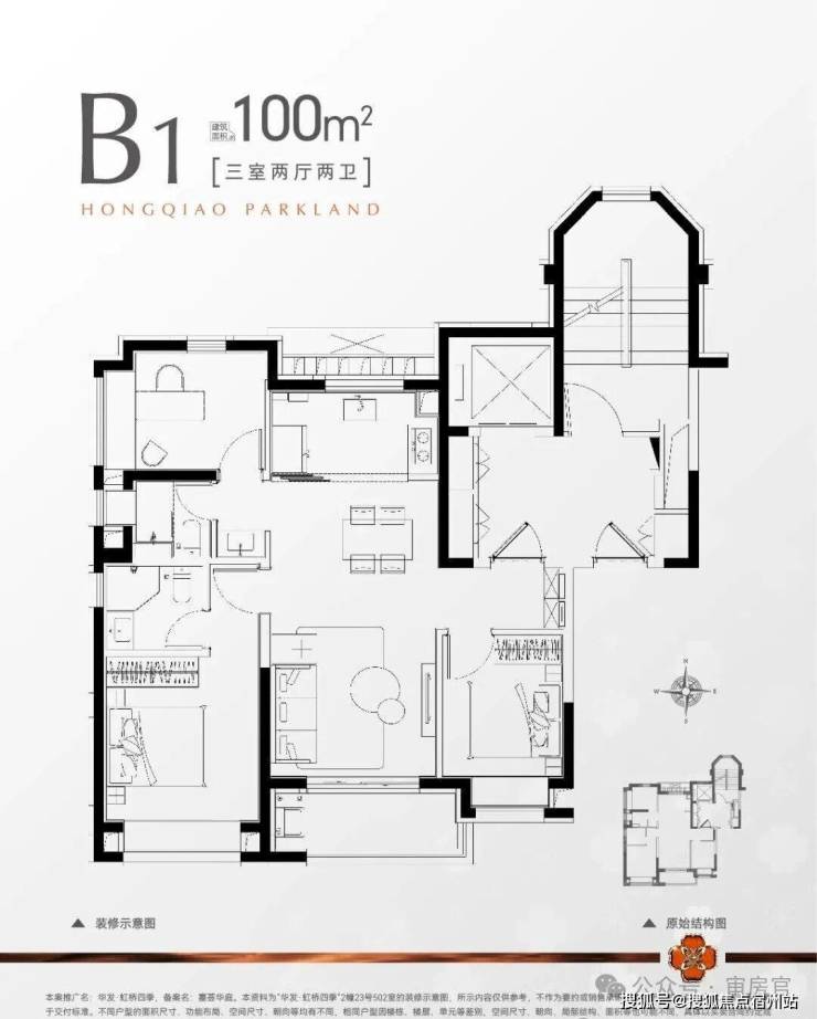 建面约100㎡3房2厅2卫