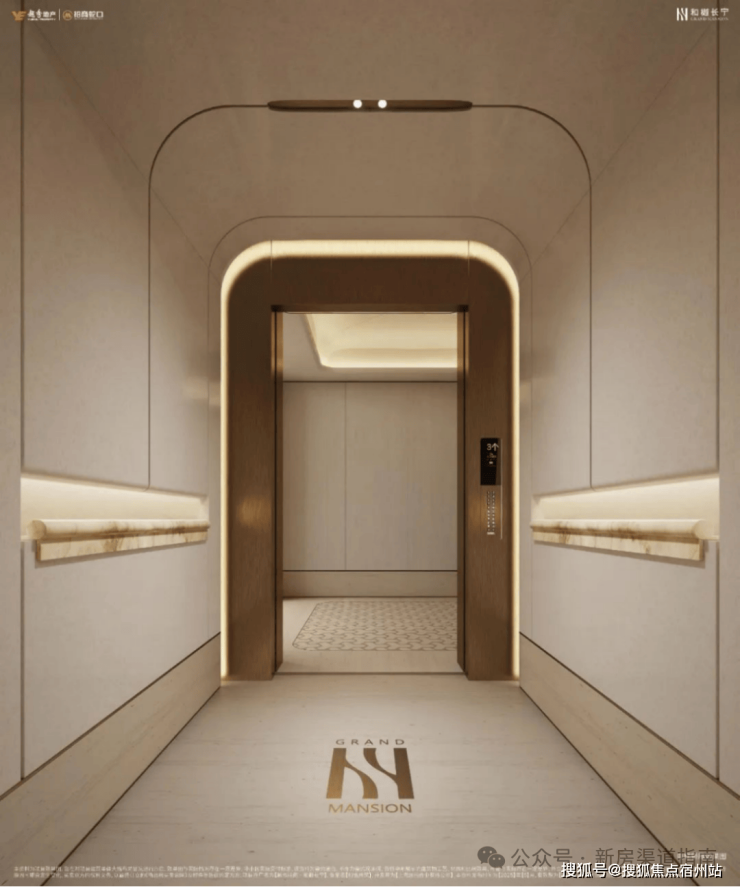 公区部分,基本以古铜色金属、暖色灯光和米色石材搭配,以“公区室内化”概念来打造更好品质体验;