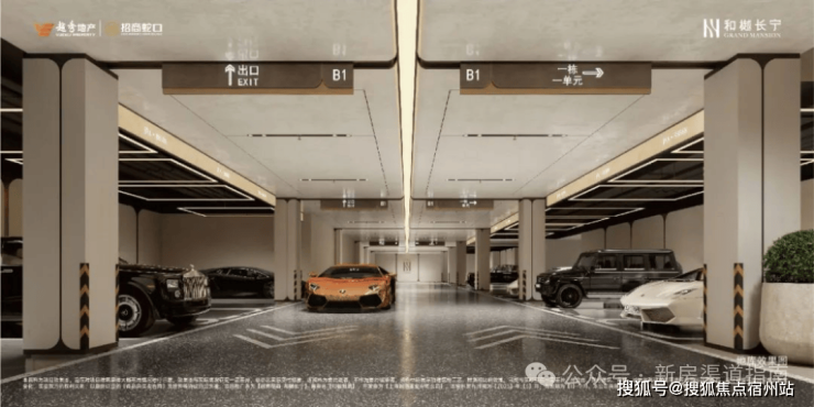 此外地下车库,不仅地面采用水磨石、主体车道全吊顶设计,每个车位上方还都有LED环绕灯吊顶,呈现给业主橱窗展示柜般体验,用来展示自己的“大玩具”;