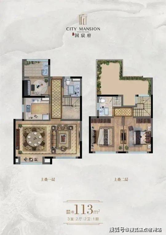 上叠:4-5层89平和113平,有露台和阁楼