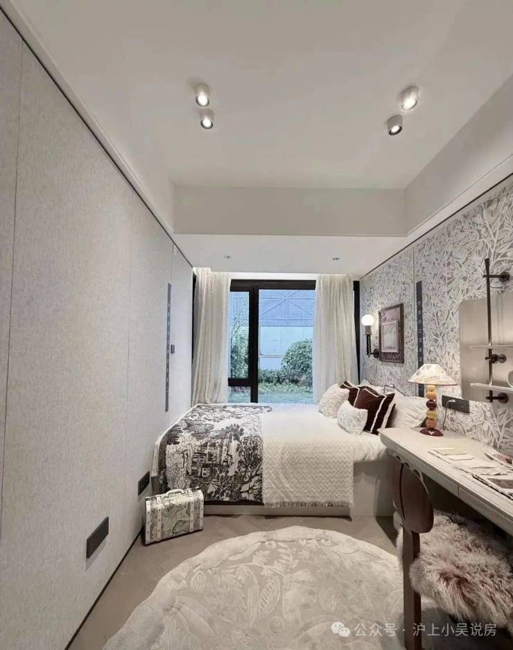 首先,这是北次卧,不仅能放下一张完整的床,还能放下一张大尺寸的办公桌或者是梳妆台,甚至还有空间做一些收纳柜和床头柜等。这样的尺度感和实用性,真的比一般建面约120㎡以上的宽绰3房更加惊人。招商序售楼处电话:400-8894-638