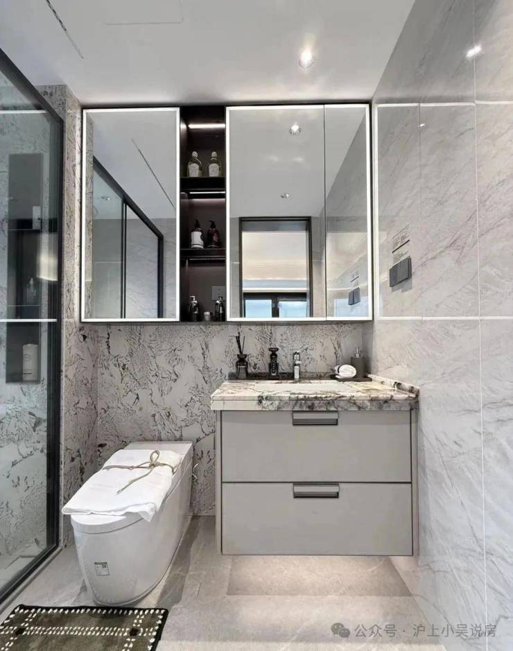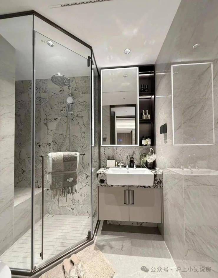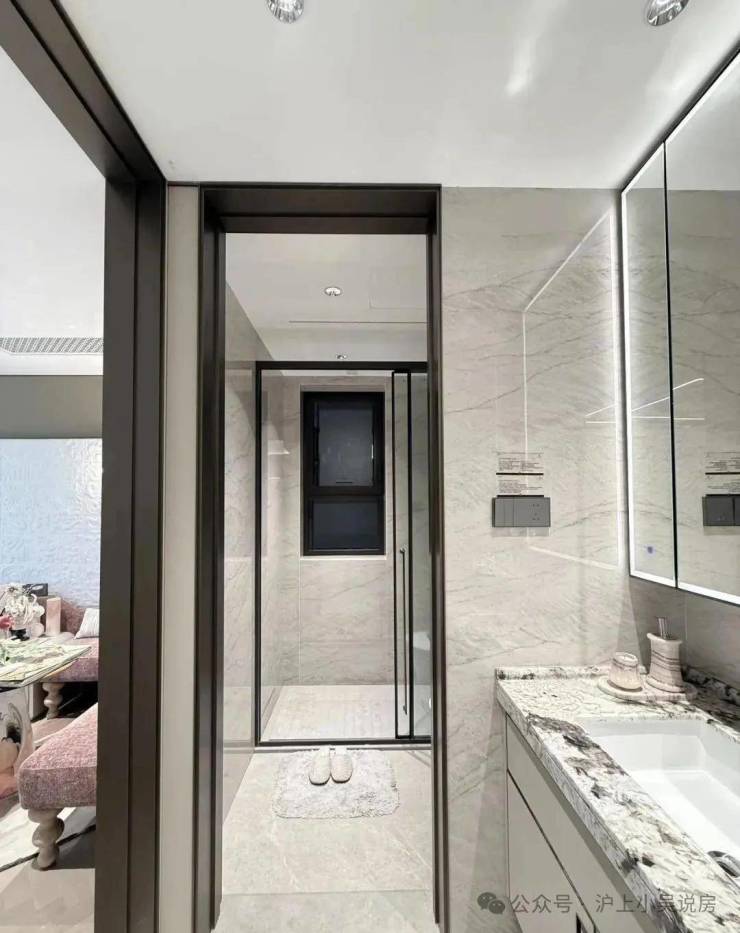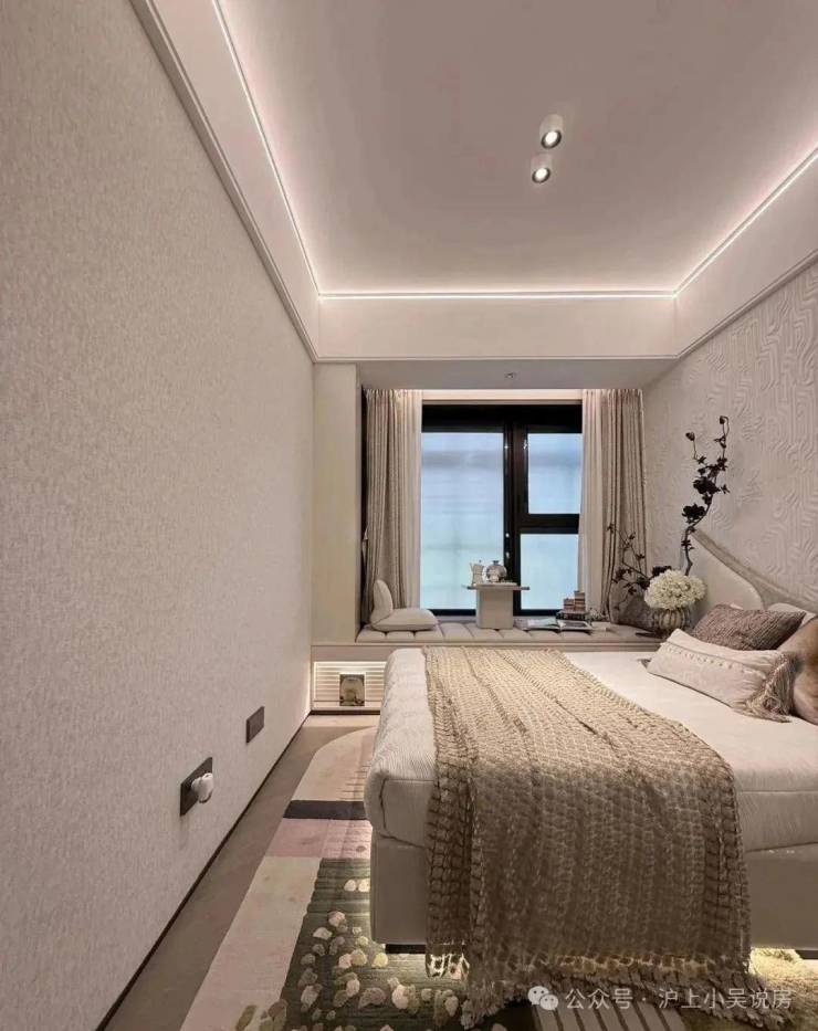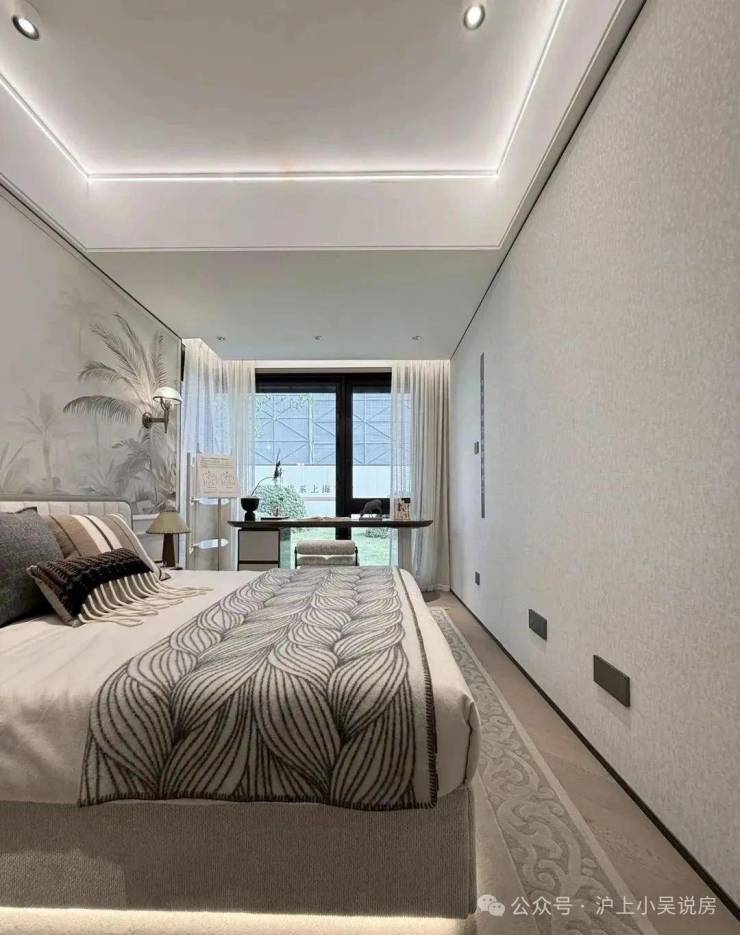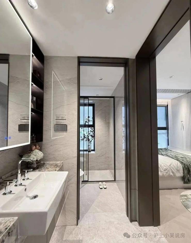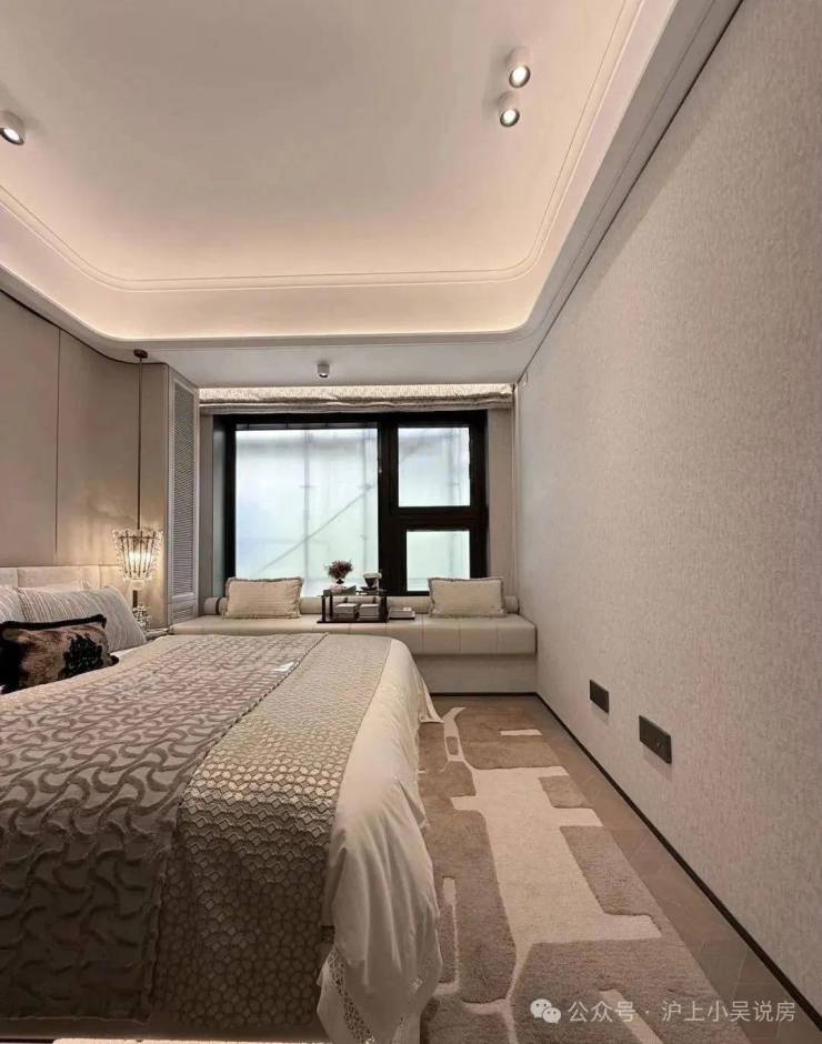 豪华的套房设计,北侧卫浴飘窗+南向床边双飘窗的设计,更是把这个空间的视野和收纳空间延展开来,尺度感真的很惊人。