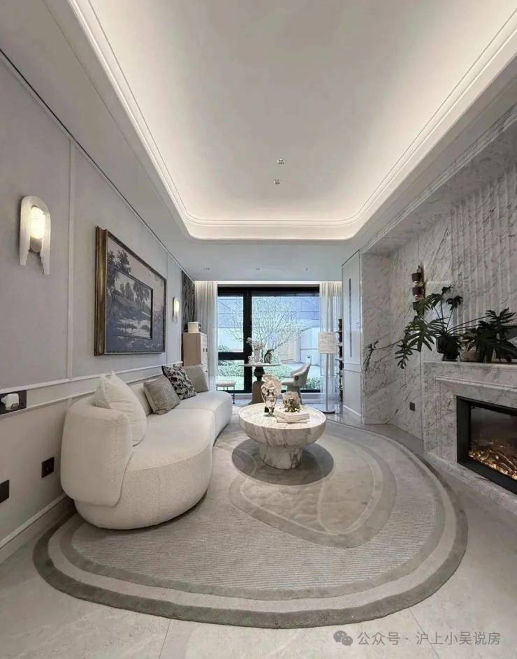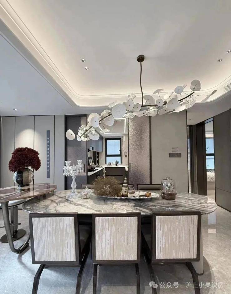 除此之外,最让我惊艳的还是这个能放下6-8人餐桌的宽绰厨房,以及这个尺度感惊人的客厅 。