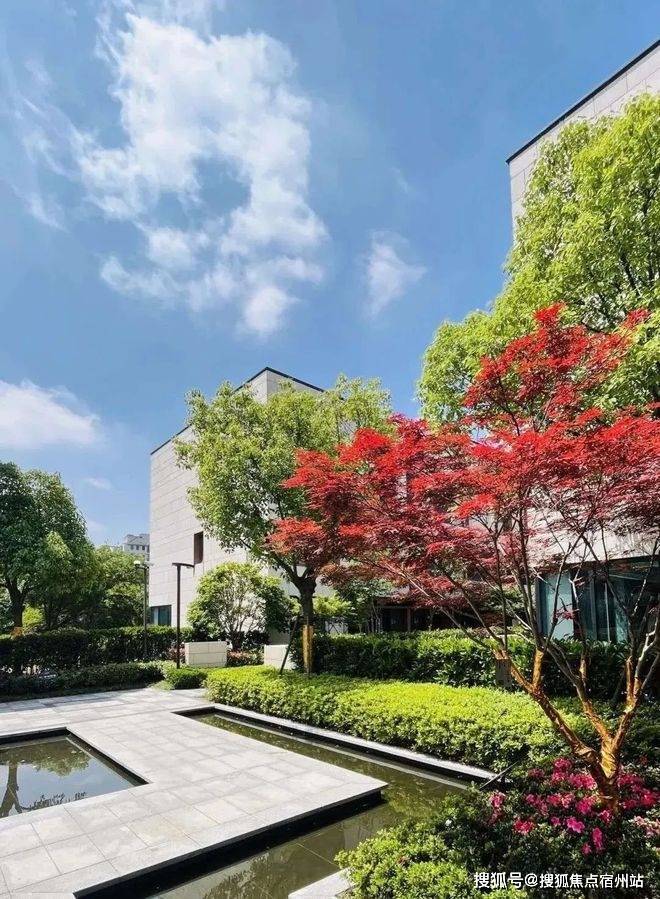 在园区细节上,更以水的点线面完成收集、净化、观赏、演化以及整体设计框架;用绿植的观赏、调节、隔离完做到完美的生态、季相、阵列;建筑上也是以水流+磐石+纹理将社区绿心贯彻到底,营造出绿色、生态的精品空间场所。
