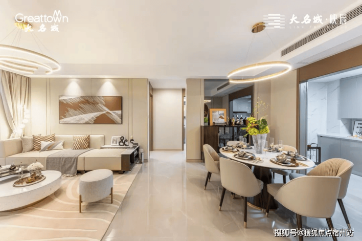 餐客厅同宽设计 , 让动区的空间感更为阔绰,小三房甚至能够摆放六人桌,家庭派对式餐厅,就是大名城映辰献给客户的知心诚意。