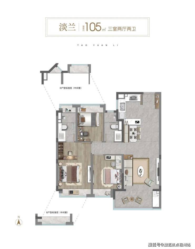 户型设计方面,105㎡样板间打造标准的三开间朝南设计,加之 约3.1米的层高 配置,整体居住体验明亮开阔。