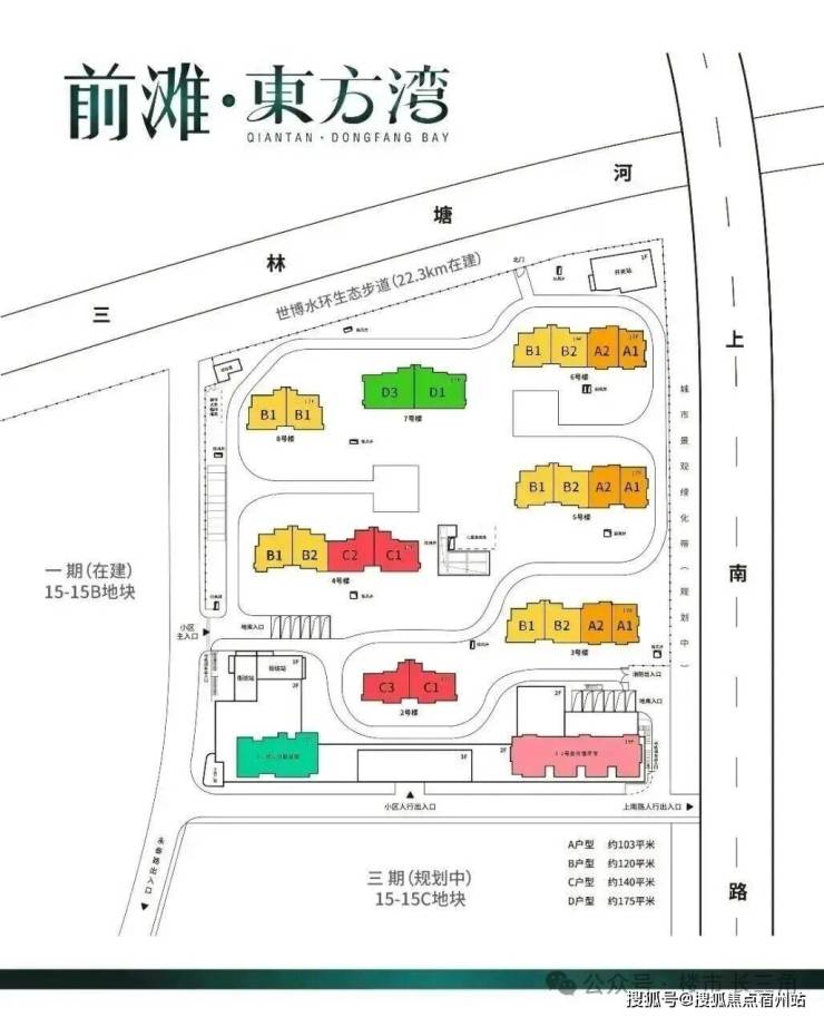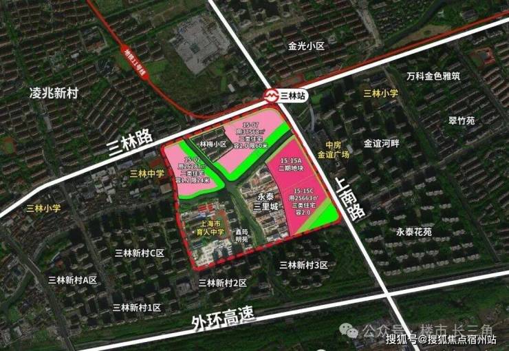 项目所处的位置是超30万方河滨大城,将打造成三林的新地标。二期地块位于一期东侧,即 15-15A地块。