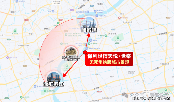 中央科创区内将建设约 350米的超高层商办地标群,与保利世博天悦·世峯隔江相望,未来将与 陆家嘴三角套、 徐汇滨江形成错落地标天际线, 无死角绝版城市景观,一览无余!