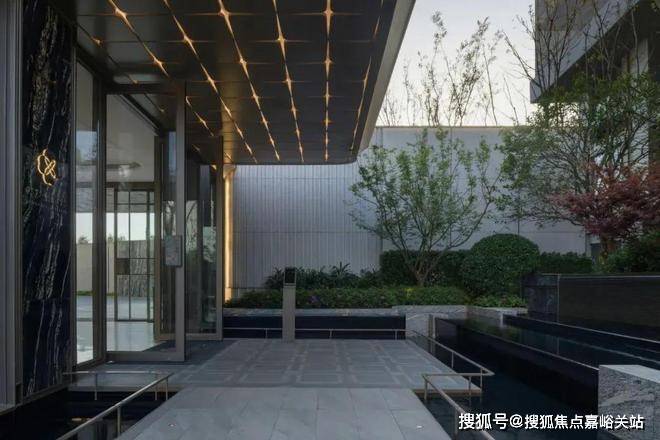 入口两边采用实体景墙与格栅形式,形成围合式院落空间,景墙前端采用奢石与金属点缀,墙面使用照壁灯有序排列,尽显奢侈度假风范。两侧阵列植物绿化,营造迎宾仪式感,凸显品质与调性。 华发虹桥四季售楼处电话:400-8824-258