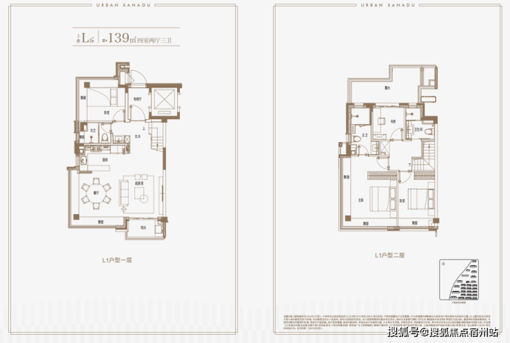 建面约139㎡上叠户型,三层是会客区,四层是居住区,阳台+露台+多个飘窗设计,附加空间非常大,在别墅类产品中实属罕见!