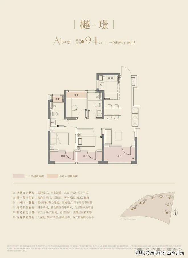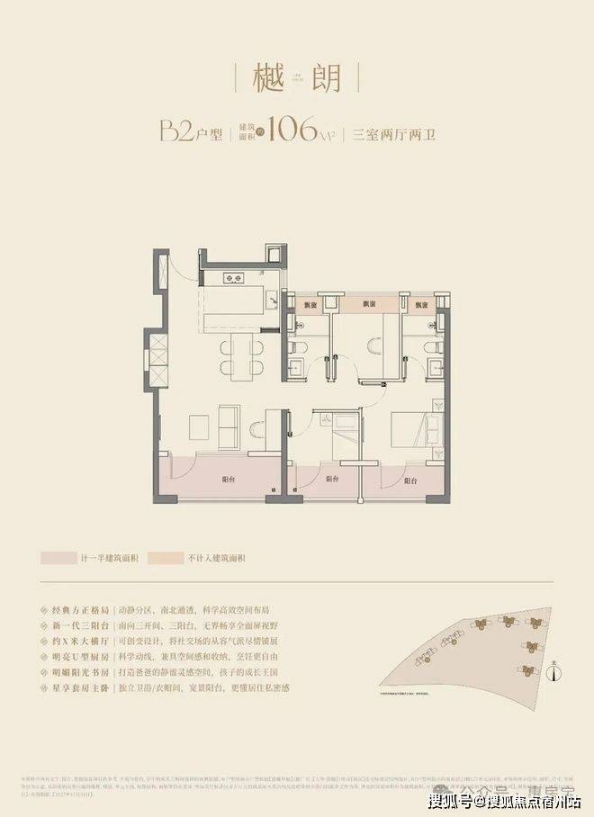 经典动静分离户型,预留分户“S”墙设计,三开间朝南+三阳台,)阳合仅计算一半建筑面积,北次卧附赠飘窗,同时飘窗两侧无墙垛,整体利用率会更高!