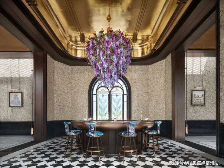 进入正门后是奢华酒店式落客区,头顶之上,看着风情穹顶,一眼穿越到和平饭店的八角玻璃穹顶之下,对标半岛酒店的落客区,让独家君有一瞬间,觉得自己从“阿宝”变成了“宝总”。